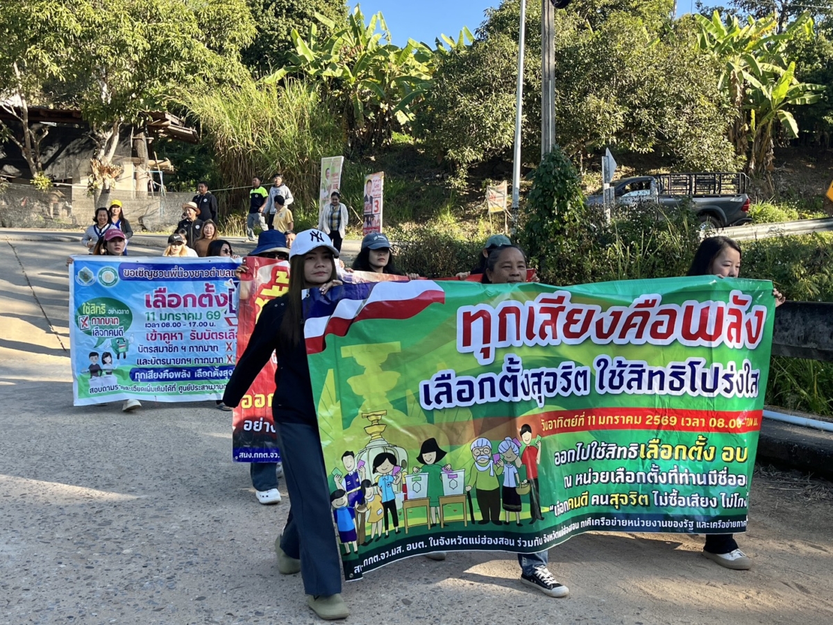 เจ้าหน้าที่อบต.แม่อูคอร่วมด้วยคณะครูและนักเรียนโรงเรียนบ้านพัฒนา เข้าร่วมกิจกรรมเดินรณรงค์เชิญชวนออกไปใช้สิทธิเลือกตั้งสมาชิกสภาองค์การบริหารส่วนตำบลแม่อูคอและนายกองค์การบริหารส่วนตำบลแม่อูคอ ณ บ้านใหม่พัฒนา หมู่ที่ 4 ตำบลแม่อูคอ อำเภอขุนยวม จังหวัดแม่ฮ่องสอน