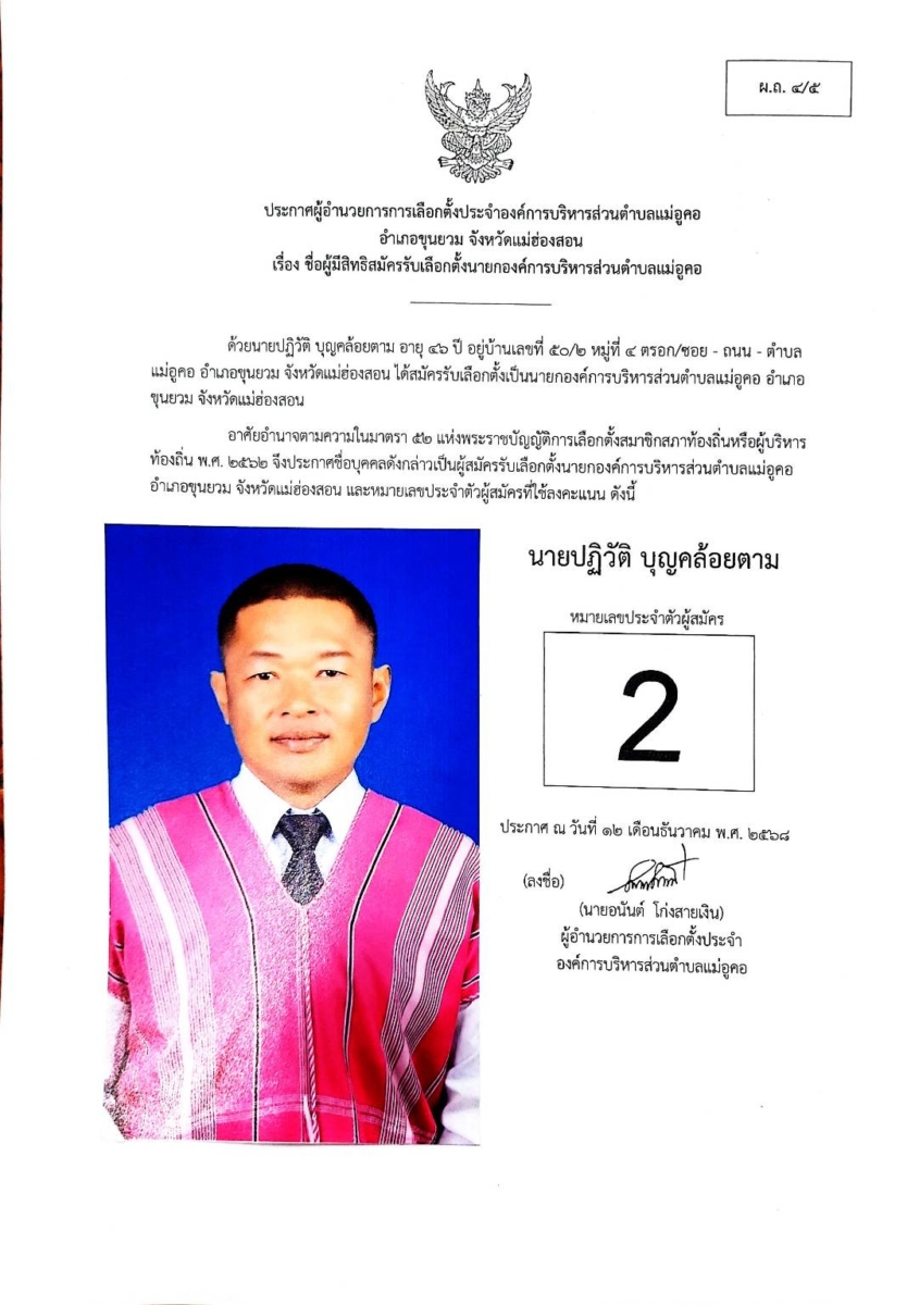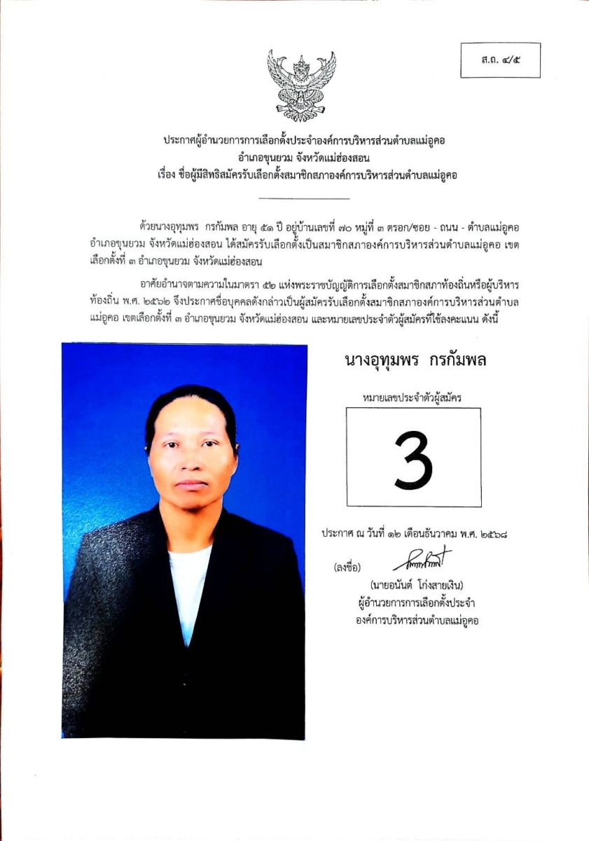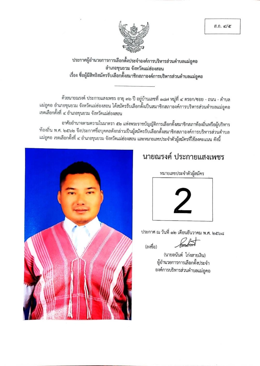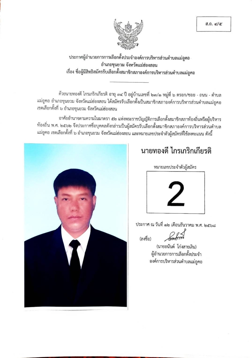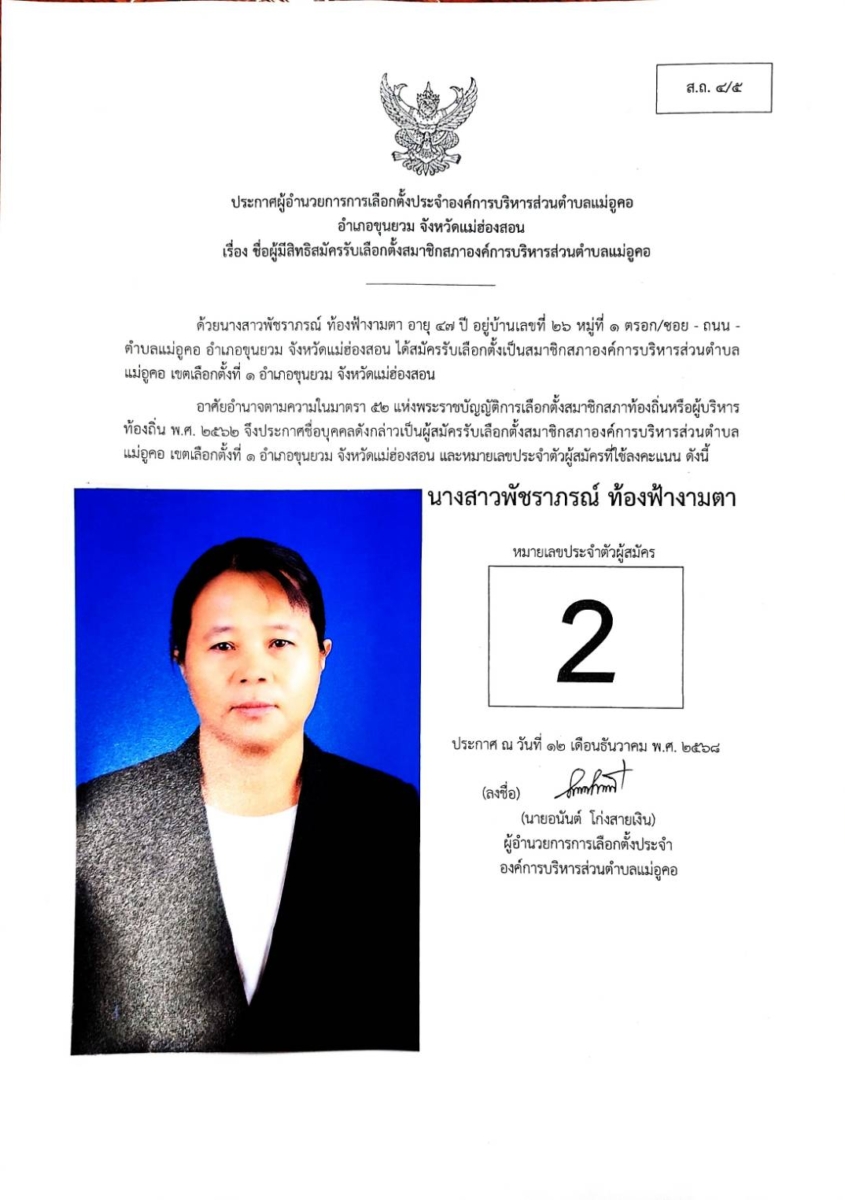 บัญชีรายชื่อผู้สมัครรับเลือกตั้งสมาชิกสภาองค์การบริหารส่วนตำบล และนายกองค์การบริหารส่วนตำบลแม่อูคอ