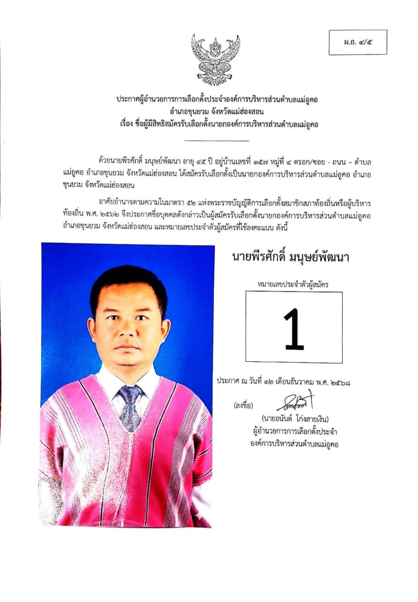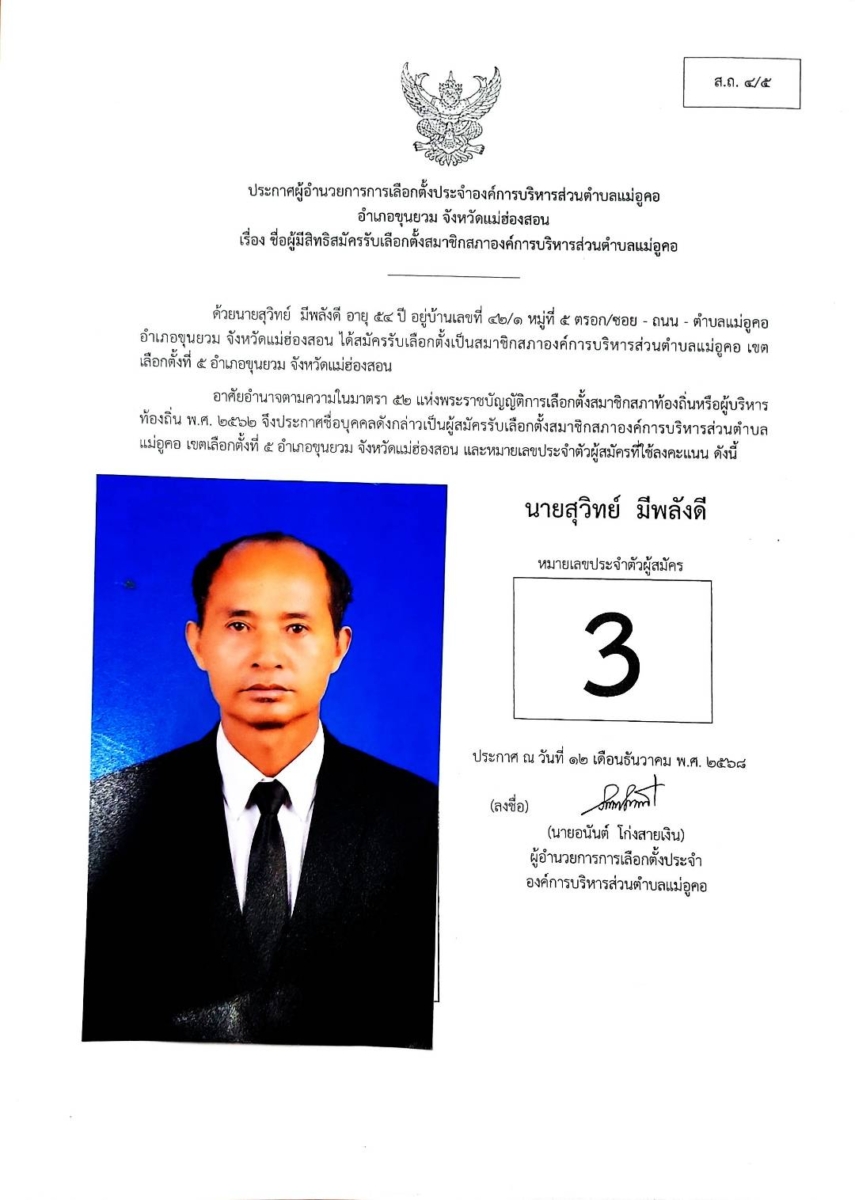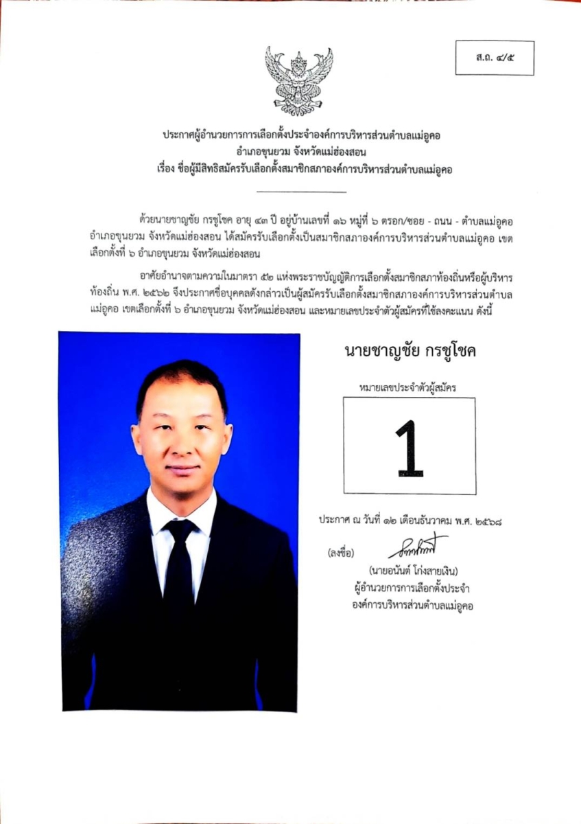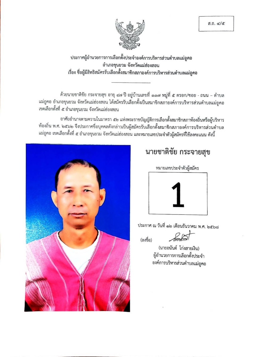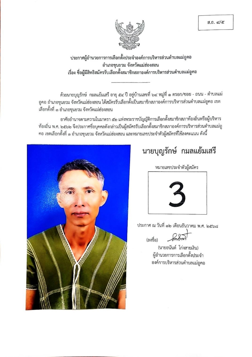 บัญชีรายชื่อผู้สมัครรับเลือกตั้งสมาชิกสภาองค์การบริหารส่วนตำบล และนายกองค์การบริหารส่วนตำบลแม่อูคอ