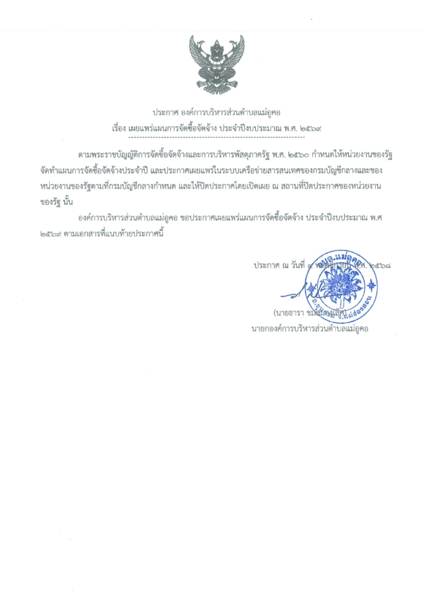 ประกาศ เรื่อง เผยแพร่แผนการจัดซื้อจัดจ้าง ประจำปีงบประมาณ พ.ศ.2569 4 พ.ย. 2025 5 views admin ประกาศเผยแพร่แผนการจัดซื้อจัดจ้าง ประจำปีงบประมาณ 2569 FacebookTwitterGoogle PlusLine Categories: กองคลัง,ข่าวจัดซื้อ-จัดจ้าง