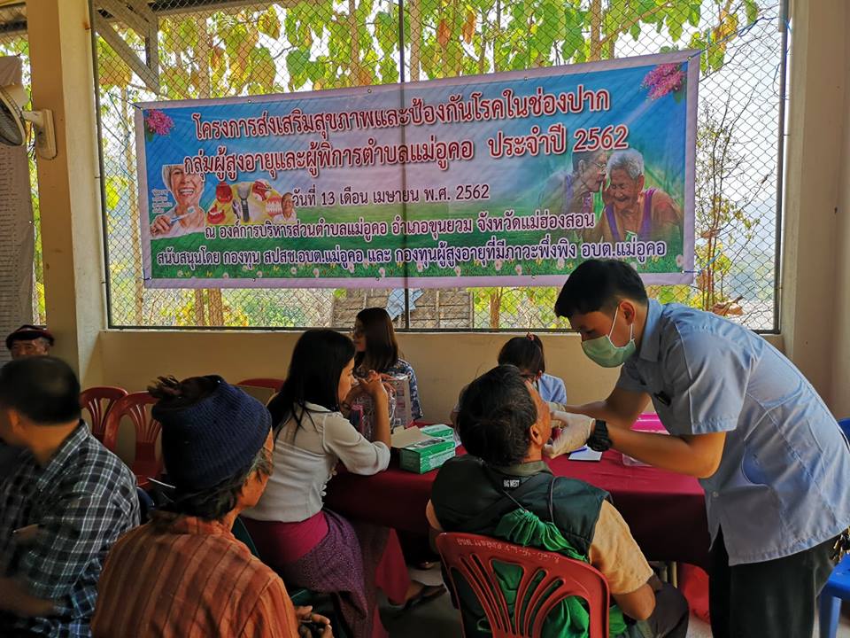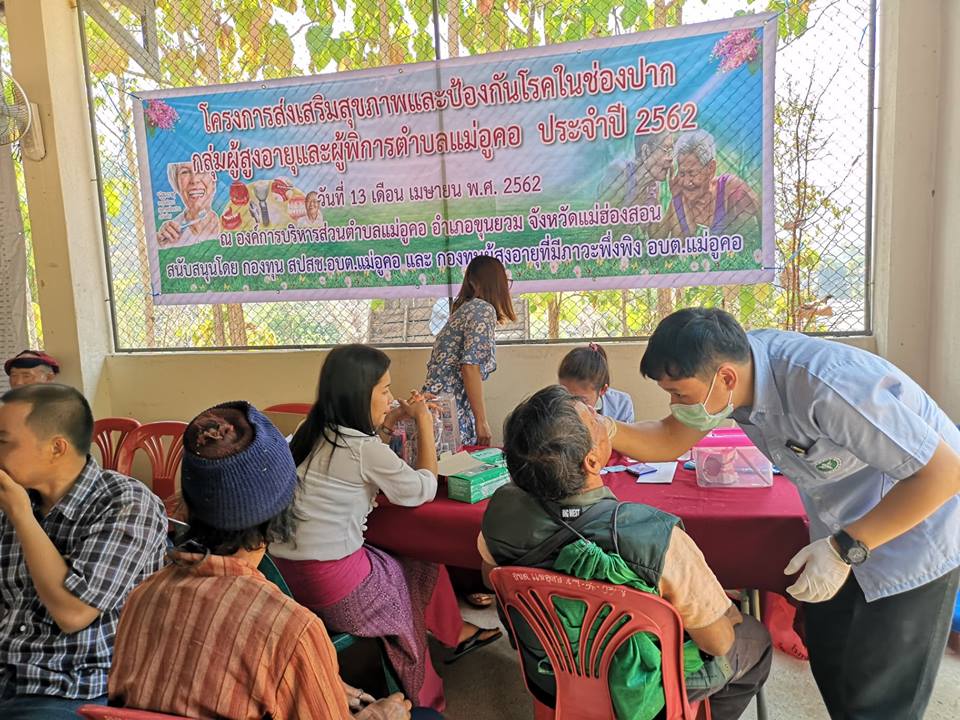 อบต.แม่อูคอ ร่วมกับ กองทุน สปสช.อบต.แม่อูคอ และ ศูนย์ผู้สูงอายุที่มีภาวะพึ่งพิง จัดโครงการส่งเสริมสุขภาพและป้องกันโรคในช่องปากกลุ่มผู้สูงอายุและผู้พิการตำบลแม่อูคอ เมื่อวันที่ 13 เมษายน พ.ศ. 2562 ณ อาคารเอนกประสงค์หมู่ 4 บ้านใหม่พัฒนา
