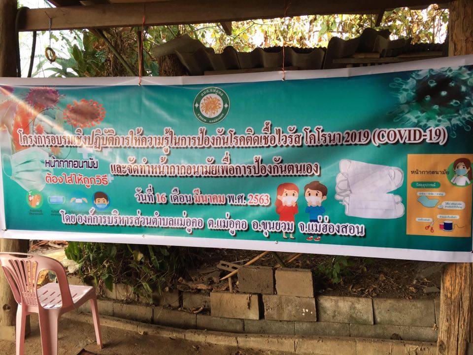 วันที่ 16 มีนาคม 2563 อบต.แม่อูคอ ได้จัดอบรมโครงการอบรมเชิงปฏิบัติการให้ความรู้ในการป้องกันโรคติดเชื้อไวรัสโคโรนา 2019 (COVID) และการจัดทำหน้ากากอนามัยเพื่อการป้องกันตนเอง ณ ที่ทำการกลุ่มสตรีบ้านใหม่พัฒนา หมู่ที่ 4 ตำบลแม่อูคอ อำเภอขุนยวม จังหวัดแม่ฮ่องสอน