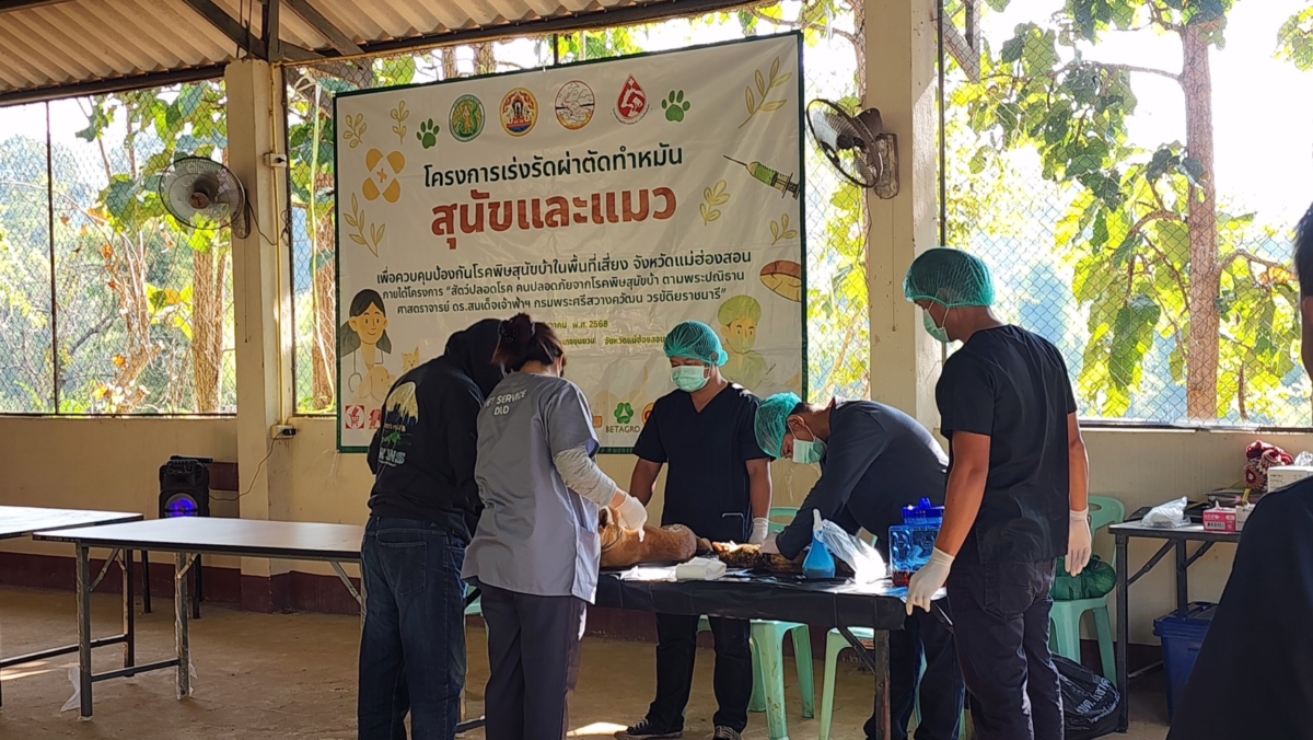 วันที่ 9 ธันวาคม 2568 หน่วยสัตวแพทย์บริการกรมปศุสัตว์ สำนักงานปศุสัตว์จังหวัดแม่ฮ่องสอน ได้ลงพื้นที่ ณ องค์การบริหารส่วนตำบลแม่อูคอ อำเภอขุนยวม จังหวัดแม่ฮ่องสอน เพื่อทำหมันสุนัขและแมวในพื้นที่ตำบลแม่อูคอ ตาม “โครงการเร่งรัดผ่าตัดทำหมันสุนัขและแมว” เพื่อควบคุมป้องกันโรคพิษสุนัขบ้าในพื้นที่เสี่ยง จังหวัดแม่ฮ่องสอน ภายใต้โครงการ “สัตว์ปลอดโรค คนปลอดภัยจากโรคพิษสุนัขบ้า ตามพระปณิธานศาสตราจารย์ ดร.สมเด็จเจ้าฟ้าฯ กรมพระศรีสวางควัฒน วรขัติยราชนารี”